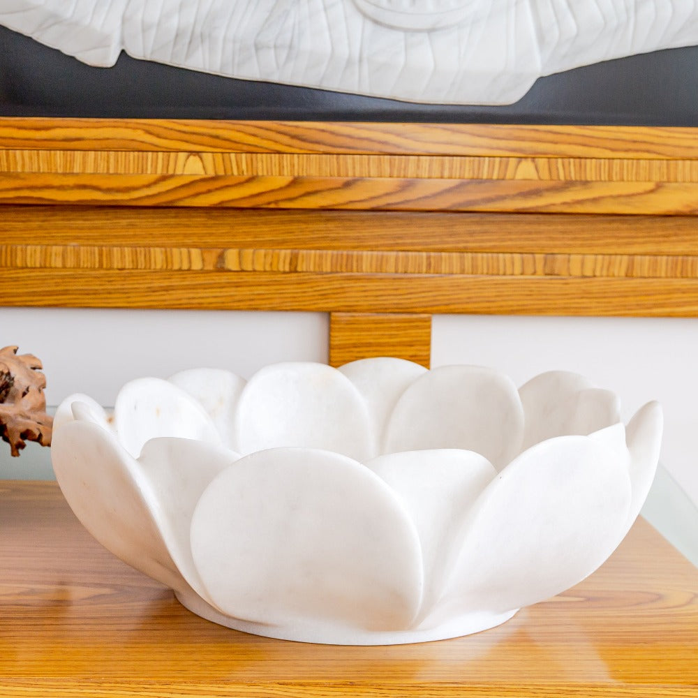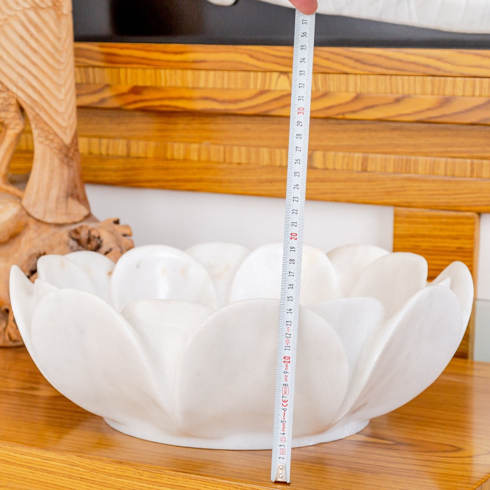 Lavabo de mármol blanco de Carrara, de piedra natural, con forma de flor, pulido (diámetro) 44 cm (altura) 16 cm