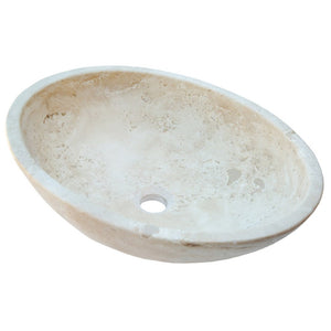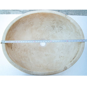 Lavabo ovalado de piedra natural travertino claro «Troia» (Ancho) 41 cm (Largo) 54 cm (Alto) 16 cm