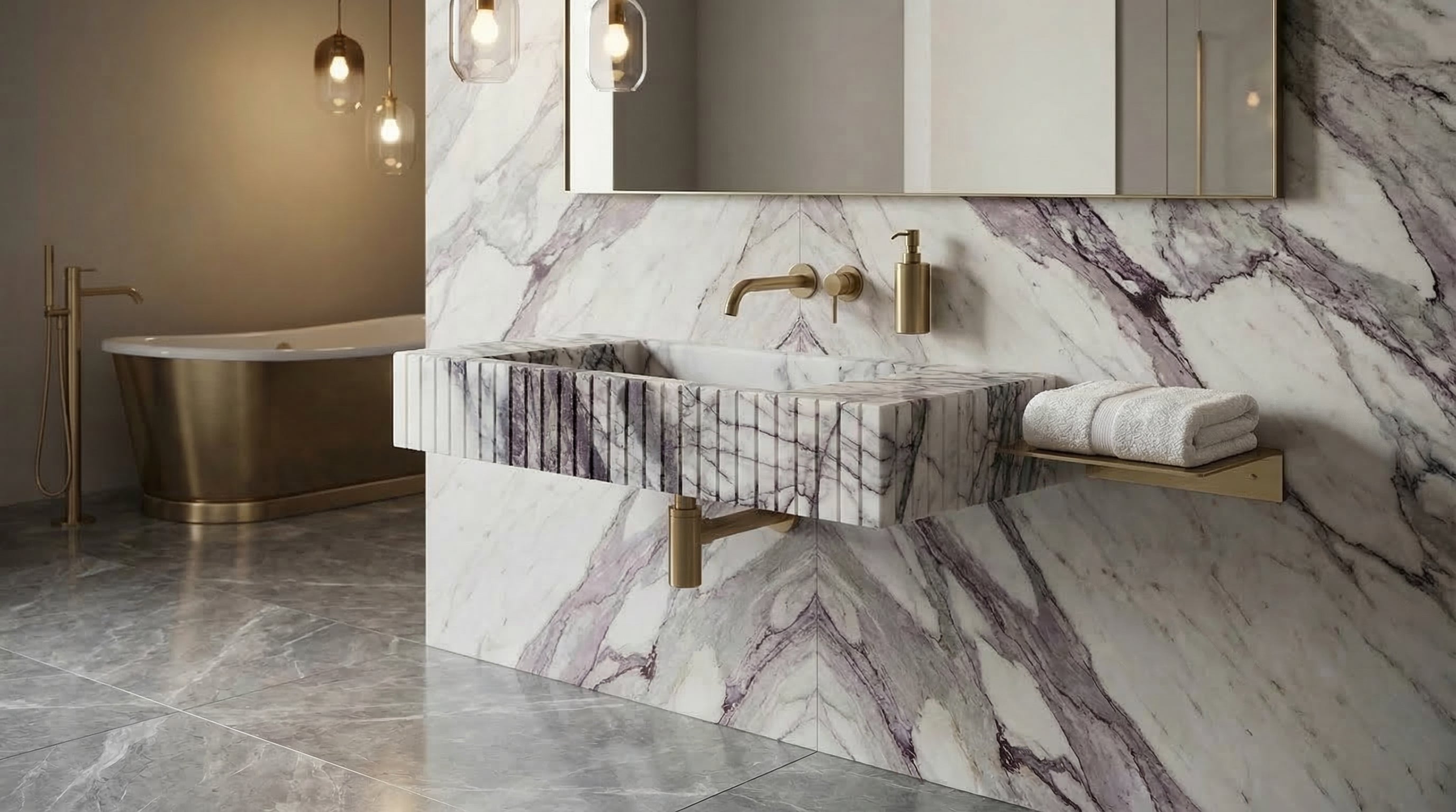 - Sink size is New York Marble Wall-mount Bathroom Sink Fluted Front (W)12" (W)20" (H)5"