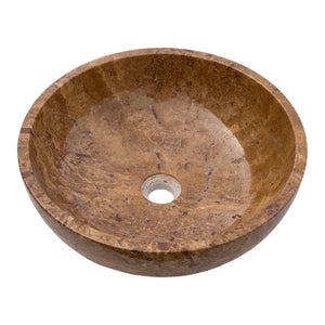 Noce Brown Travertine Natural Stone Above-vanity Bathroom Sink Polished (D)16" (H)6" is Handcrafted in Turkey and suitable for over-countertop or under-mount installation since it has flat top.