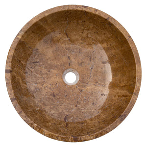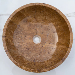Lavabo de baño de piedra natural de travertino marrón Noce, para colocar sobre el mueble, pulido (diámetro) 41 cm (altura) 16 cm - LISTO PARA ENVIAR