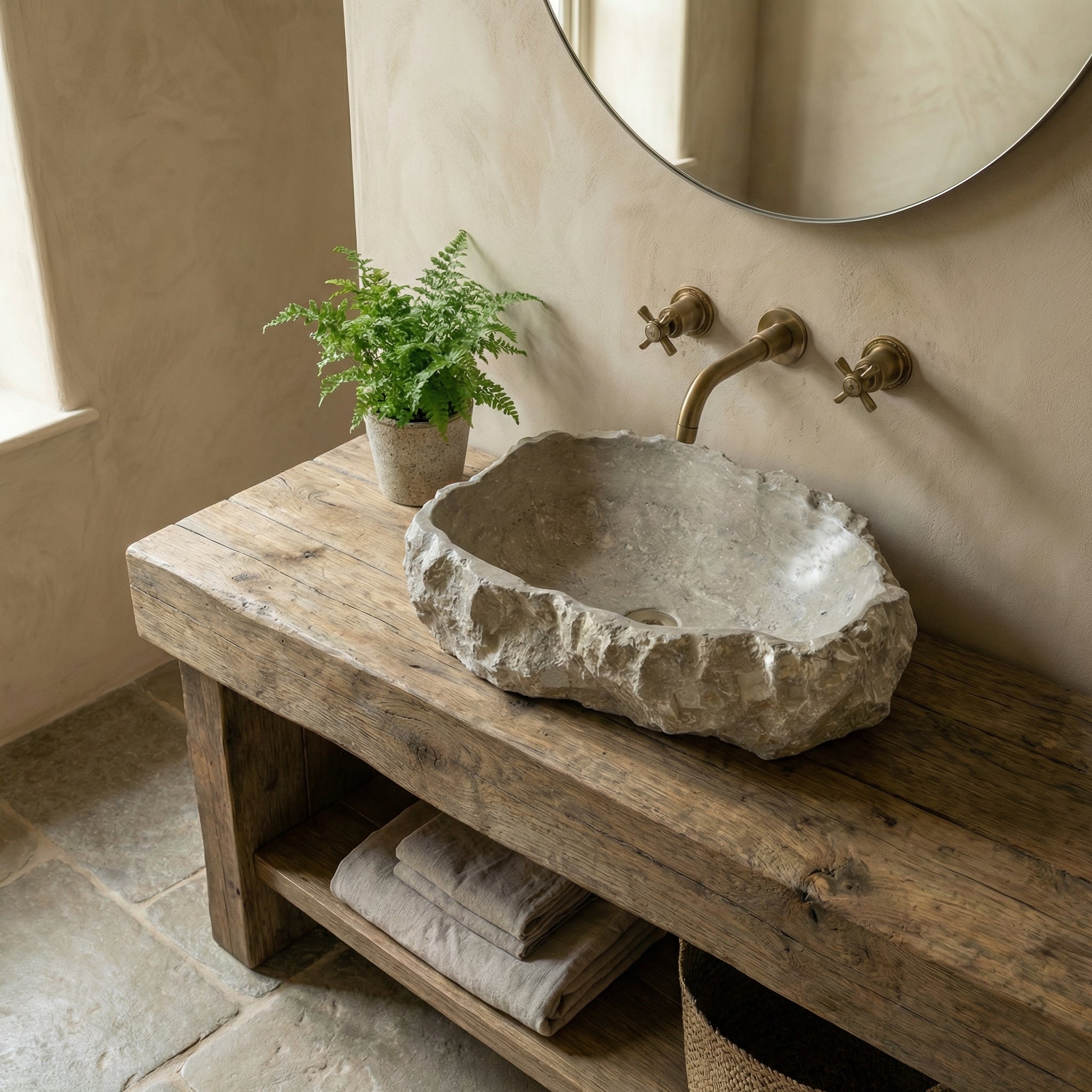 The combination of a smooth, polished interior and chiseled exterior ensures this vessel sink will be the focal point of your bathroom decor. The breathtaking limestone from Turkey will blend into any setting. These bowl sinks for bathrooms are not only convenient for everyday use, but also an ornament for your living space. The artisanal construction ensures that no two sinks will be exactly identical. The polished interior is perfectly paired with a unique textured exterior for a tactile experience.