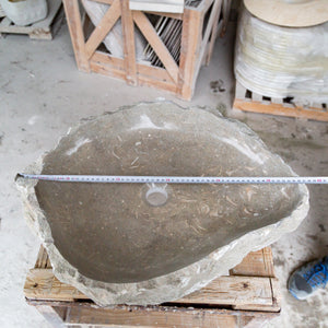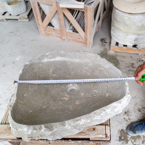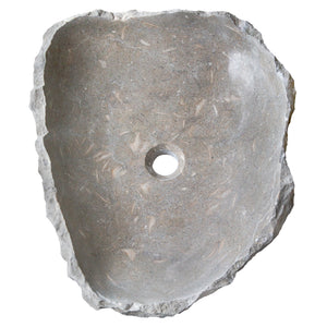 Seagrass Fossil Limestone Rustic Natural Stone Vessel Sink Polished Interior Hand Chiseled Exterior is Handcrafted in Turkey. It can be used in bathrooms above the counter.