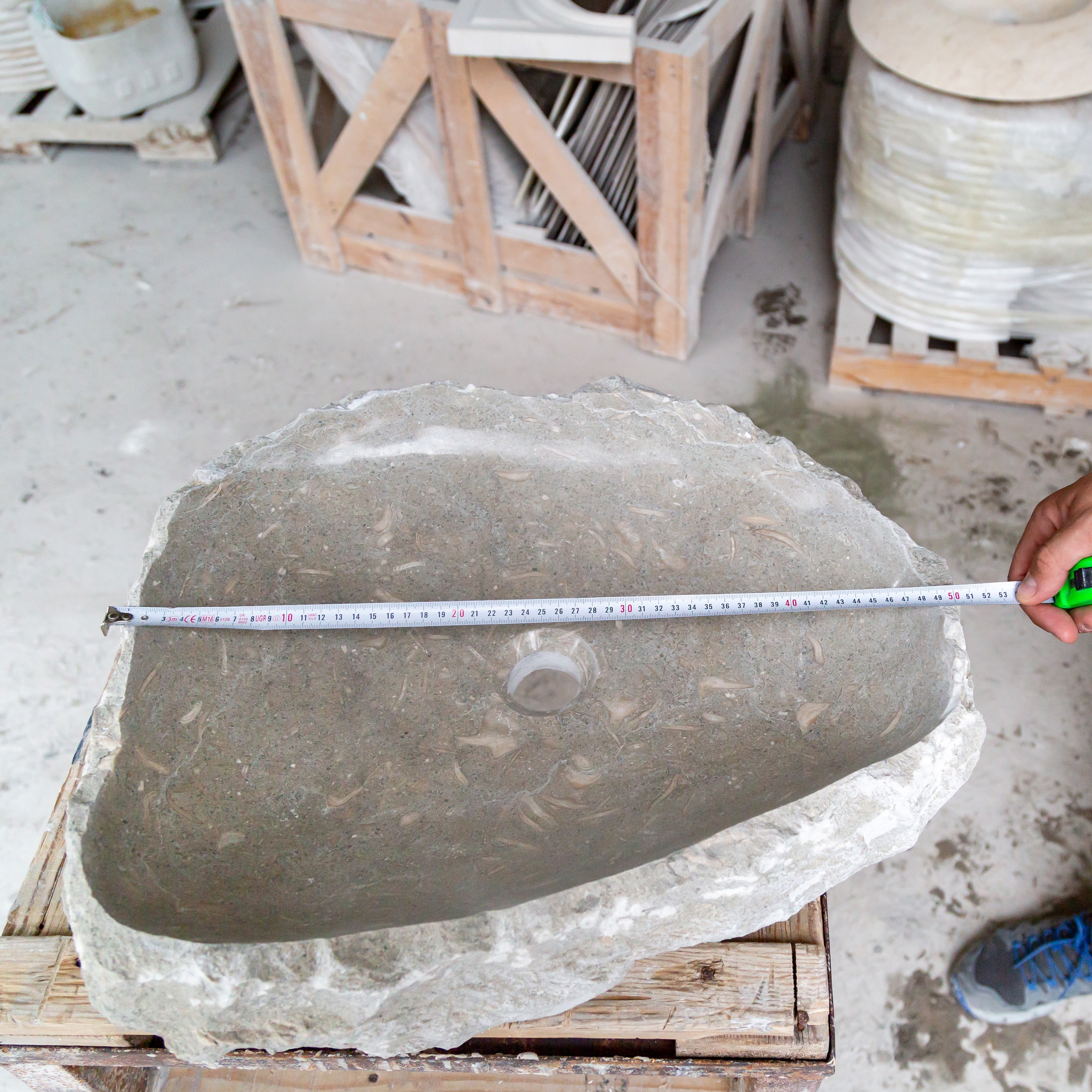 Lavabo de piedra natural rústica con diseño de caliza fósil de algas marinas (An) 41 cm (L) 51 cm (Al) 13 cm