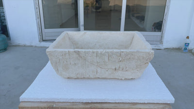 The combination of honed interior and hand-chiseled exterior ensures this sink will be the focal point of your bathroom decor. The breathtaking travertine from Turkey will blend into any setting. These rectangular vessel sinks for the bathroom are not only convenient for everyday use but also an ornament for your living space. The artisanal construction ensures that no two sinks will be precisely identical.