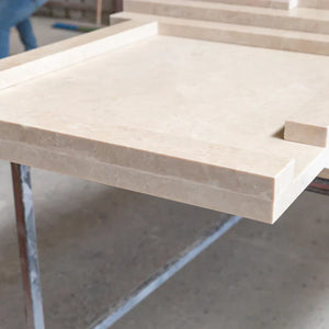 This stunning fireplace mantel is crafted from luxurious cappuccino beige marble, renowned for its warm tones and elegant veining. Embracing the Art Deco style, it features bold geometric lines and graceful curves, creating a striking focal point that enhances any interior space.