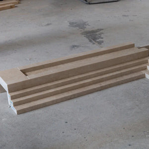 Cornisa de chimenea Art Déco de mármol beige capuchino, tallada a mano y pulida (Ancho) 178 cm (Largo) 188 cm