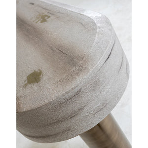This console is a statement piece with its distinctive design. The top is adorned with a special effect stone paint finish, creating a textured and visually appealing look. The single drawer provides convenient storage space, while the antique brass legs add a touch of luxury and warmth. This console is sure to elevate any room.